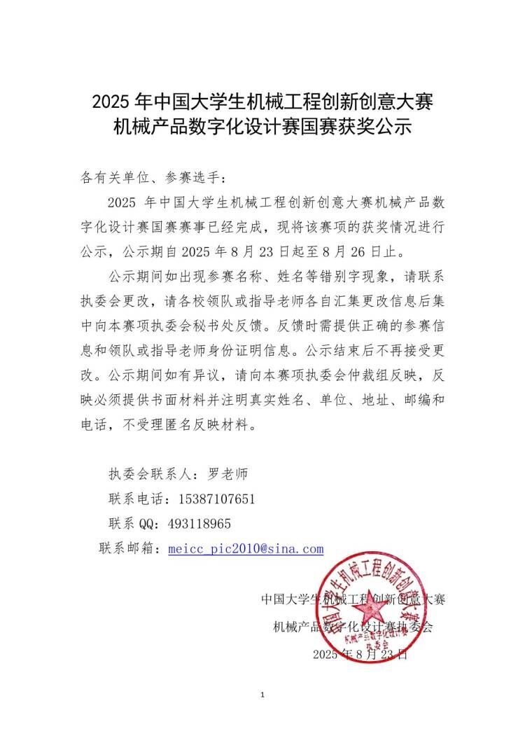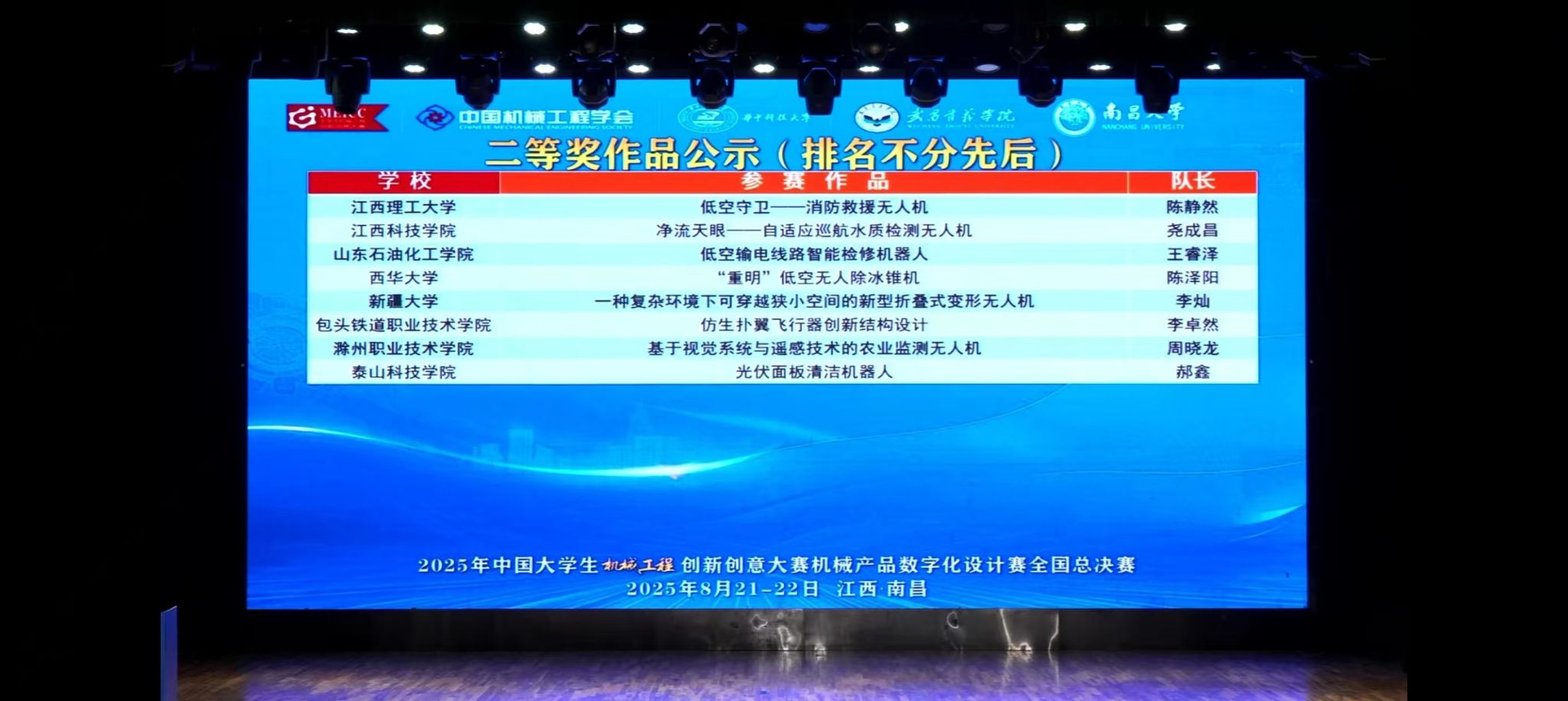 2025年8月22日,2025年中国大学生机械工程创新创意大赛机械产品数字化设计赛全国总决赛在南昌大学圆满落幕。新葡的京集团35222vip传媒与设计学院设计艺术系工业设计专业两支参赛队伍表现突出,分别荣获全国二等奖两项,展现了扎实的专业功底与卓越的创新能力。
