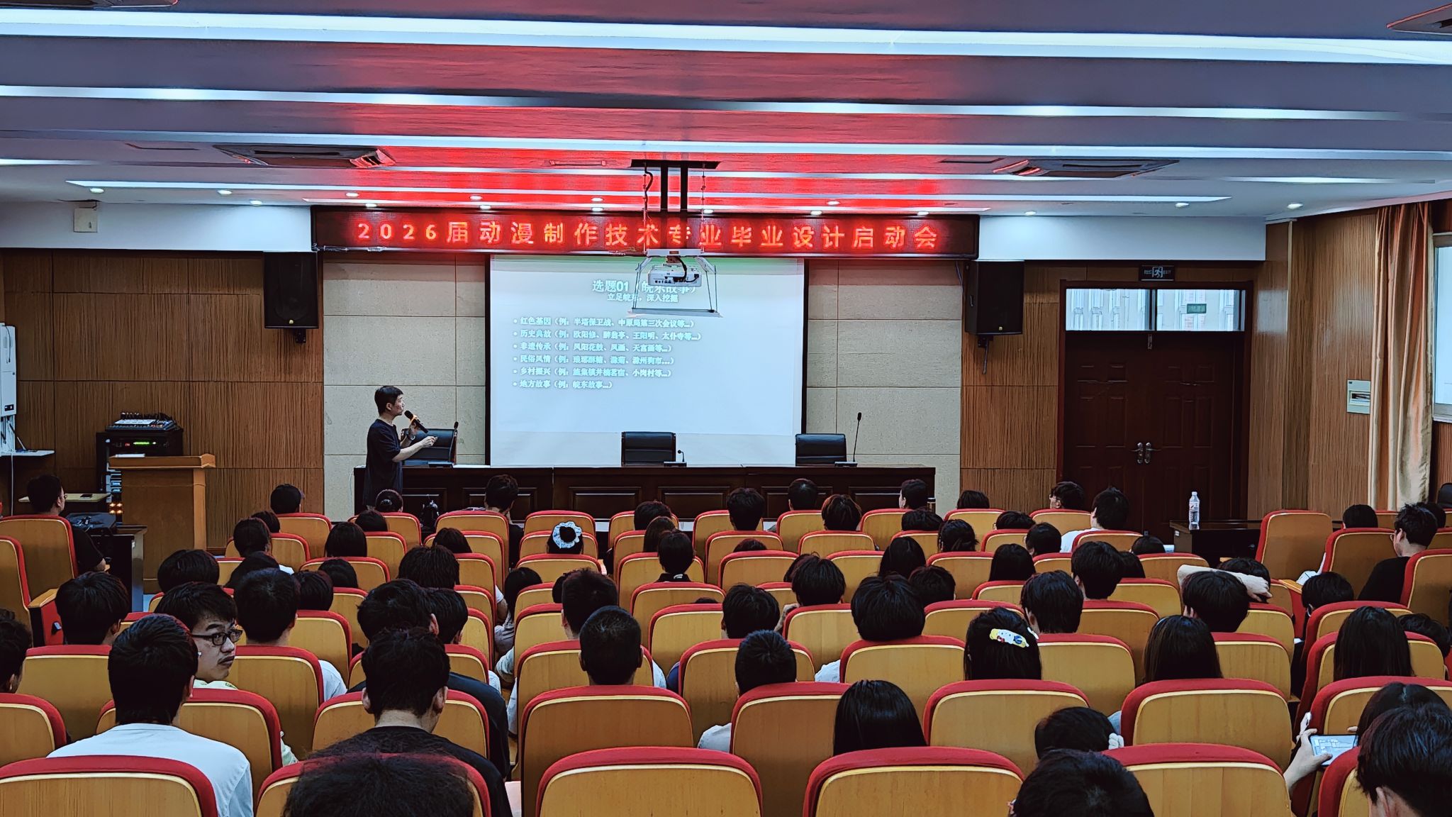9月17日下午,动漫制作技术专业在南阶205报告厅举行2026届毕业设计启动会,动漫制作技术专业全体毕业设计指导老师及2026届毕业生参加会议,会议由动漫制作技术专业负责人王一超主持。