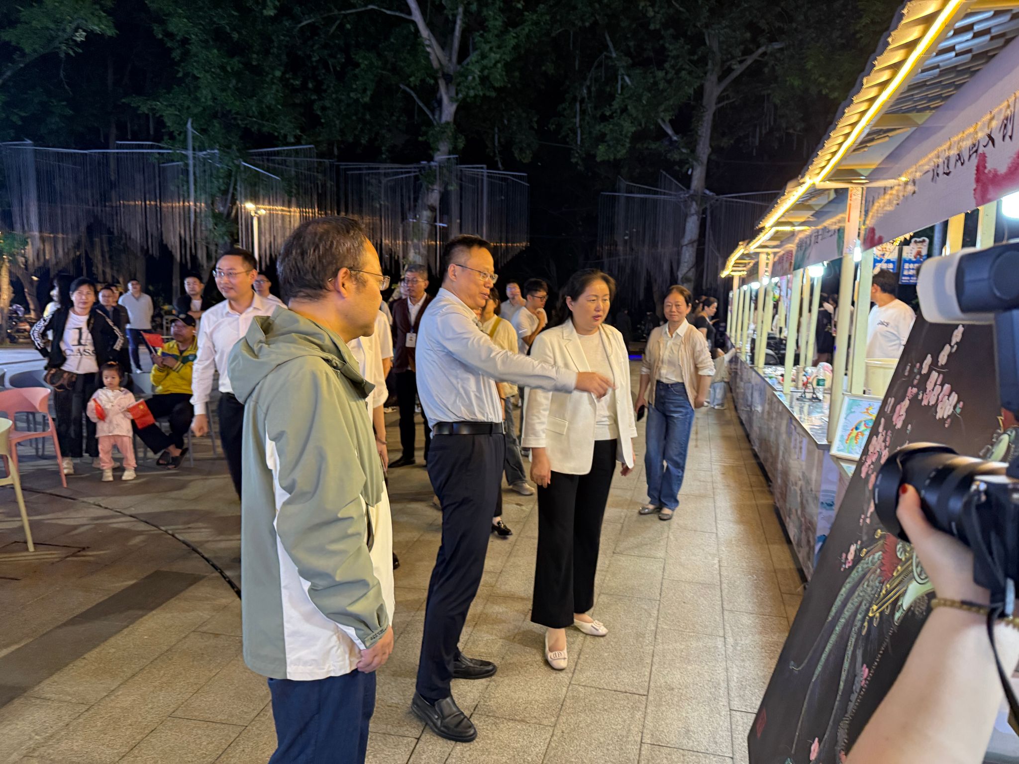 秋夜星辉,灯火璀璨。9月29日晚,由滁州市委人才工作局、共青团滁州市委员会、琅琊区人民政府主办,新葡的京官网团委、传媒与设计学院等单位共同承办的滁州满天星人才街区2025“庆国庆·迎中秋”青年人才创意集市在悦达889街区火热启幕。新葡的京官网作为核心承办单位之一,以15个特色展位的亮眼阵容精彩亮相,涵盖非遗传承、公益义卖、教师创新三大板块,校党委书记陈飏等校内外领导莅临现场,企业代表也进行交流。