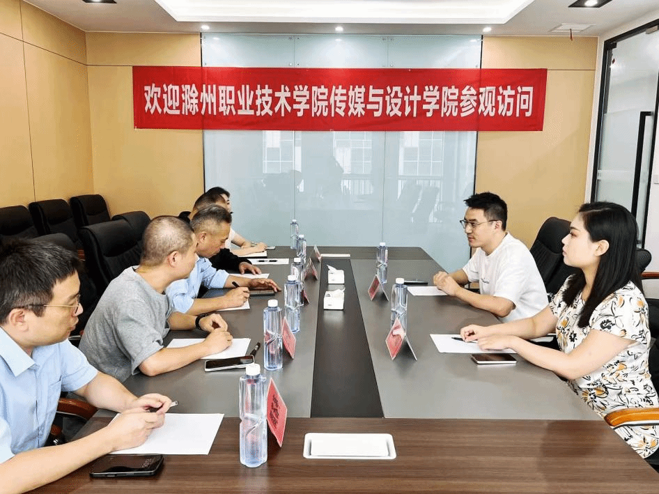 9月26日,传媒与设计学院党总支书记王广保、院长闻建强、数字媒体系主任李雯雯、动漫制作技术专业教师王一超、周苏亭一行前往滁州异次元互动娱乐有限公司开展访企拓岗与企业实践交流活动。