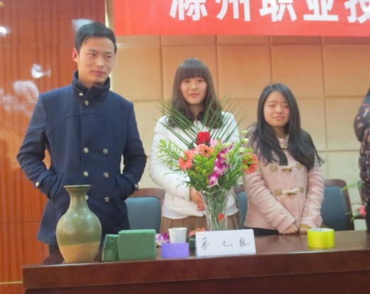 院团委书记王倍倍宣布女生节开幕之后,心灵手巧插花比赛紧接着拉开了帷幕。每系派三名参赛选手需在规定的40分钟内完成插花作品。艺术设计系系参赛队伍充分发挥团结协作的精神,在经过短暂的讨论之后达成方案,并立即进行分工,队员间配合完美,比赛期间有条不紊。最后通过我他们的不懈努力,我系的插花作品“孔雀开屏”以8.5分的好成绩荣获本次比赛第四名。