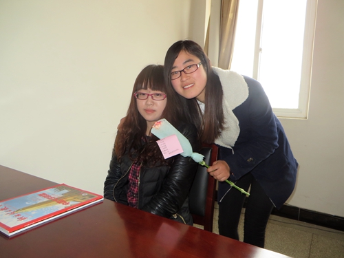 上午9时,在学生会主席的组织带领下,同学们到各个办公室为老师们送去诚挚的祝福,感谢老师一年来的辛勤工作,祝愿她们越来越美丽,越来越年轻!