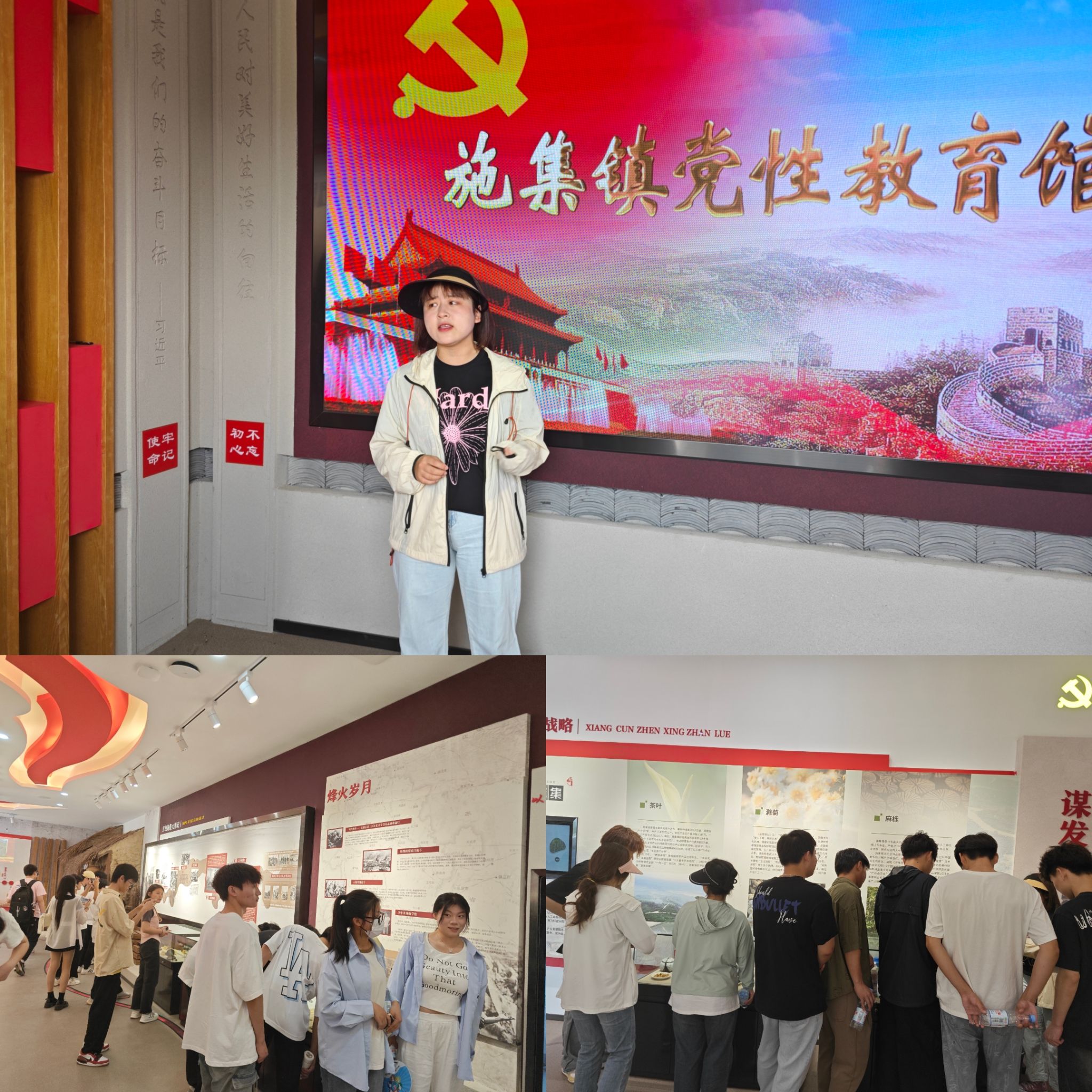 大家首先来到施集镇党性教育馆,场馆共设新思想、永传承、谋发展、守初心四个板块。在讲解员的解说下,大家听党史故事,忆峥嵘岁月,回顾党在建国前的艰辛路程,纷纷表示要牢记自身使命担当,响应新时代号召,为祖国贡献自己的智慧和力量。