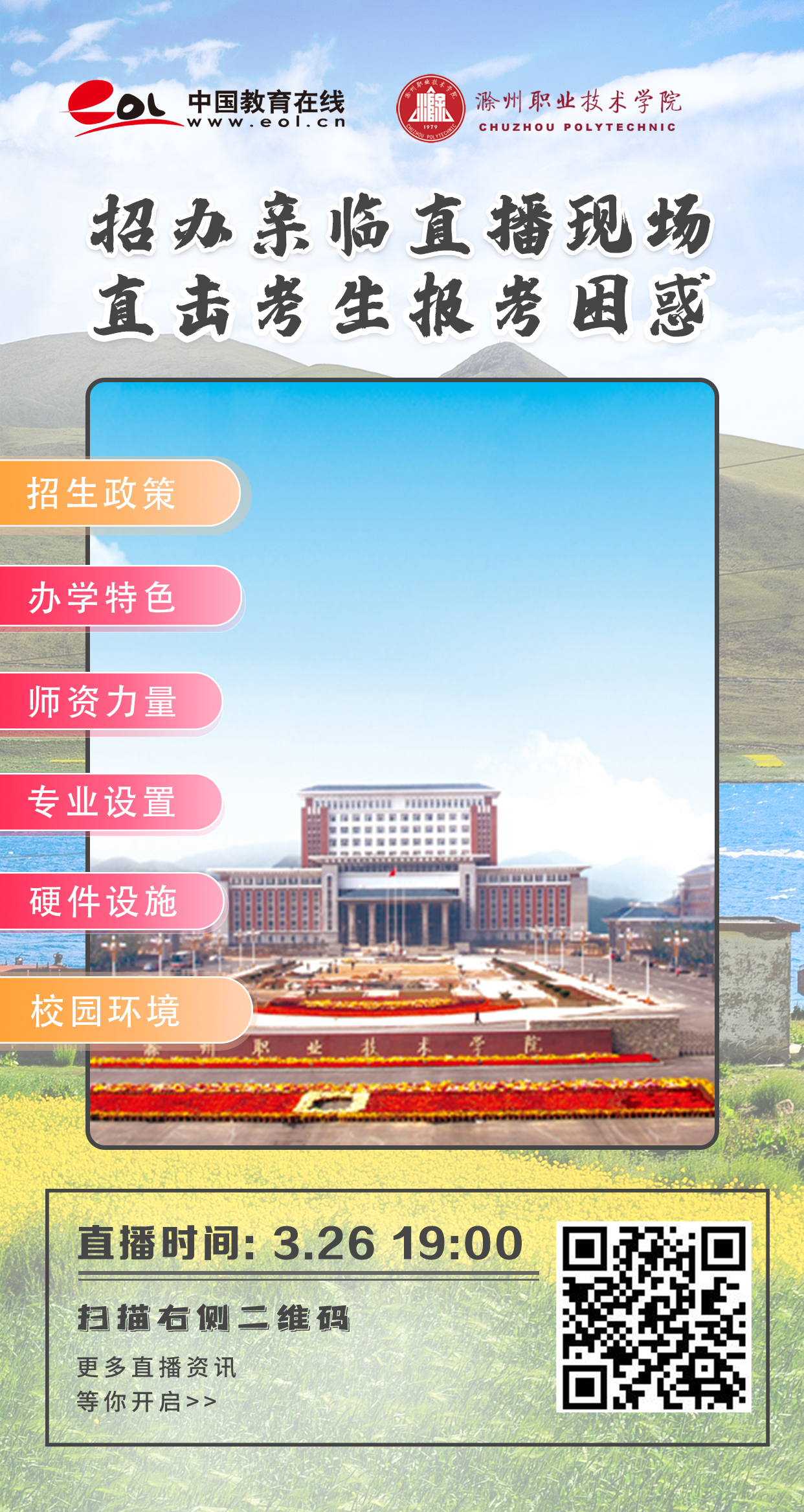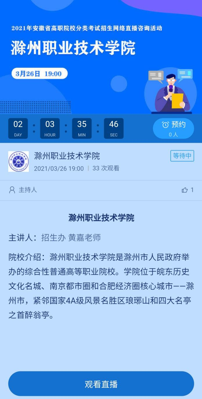 届时招办老师将通过直播形式