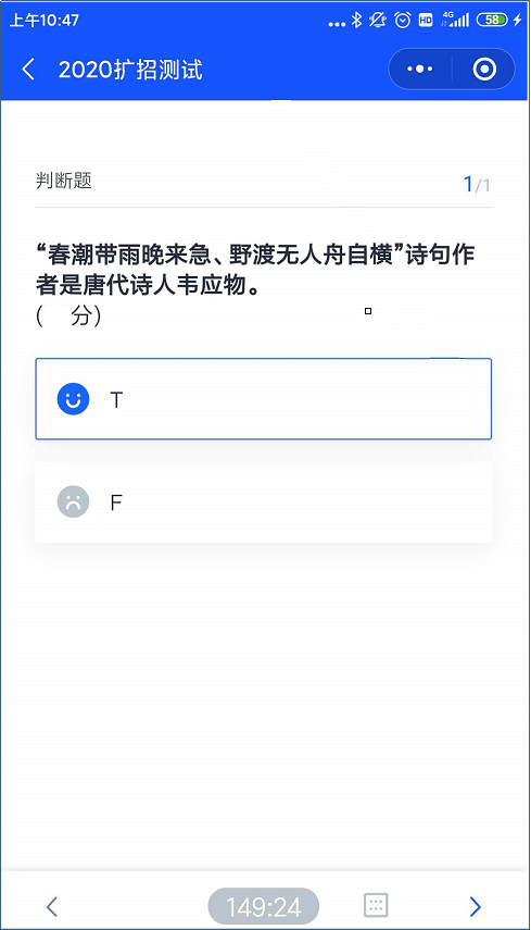本次考试为线上考试,考生可以选择使用手机进行,如果考试过程中设备出现死机等其他意外情况,可重新登录无缝续考。