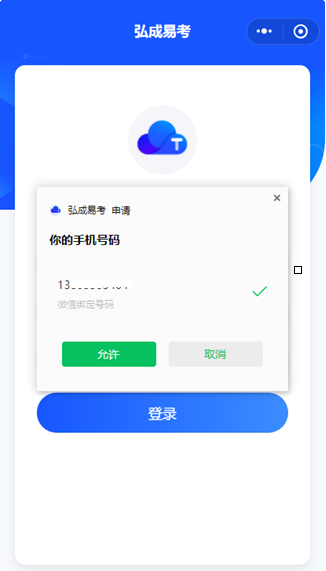 (2)打开“弘成云考”小程序,绑定微信,授权登录;