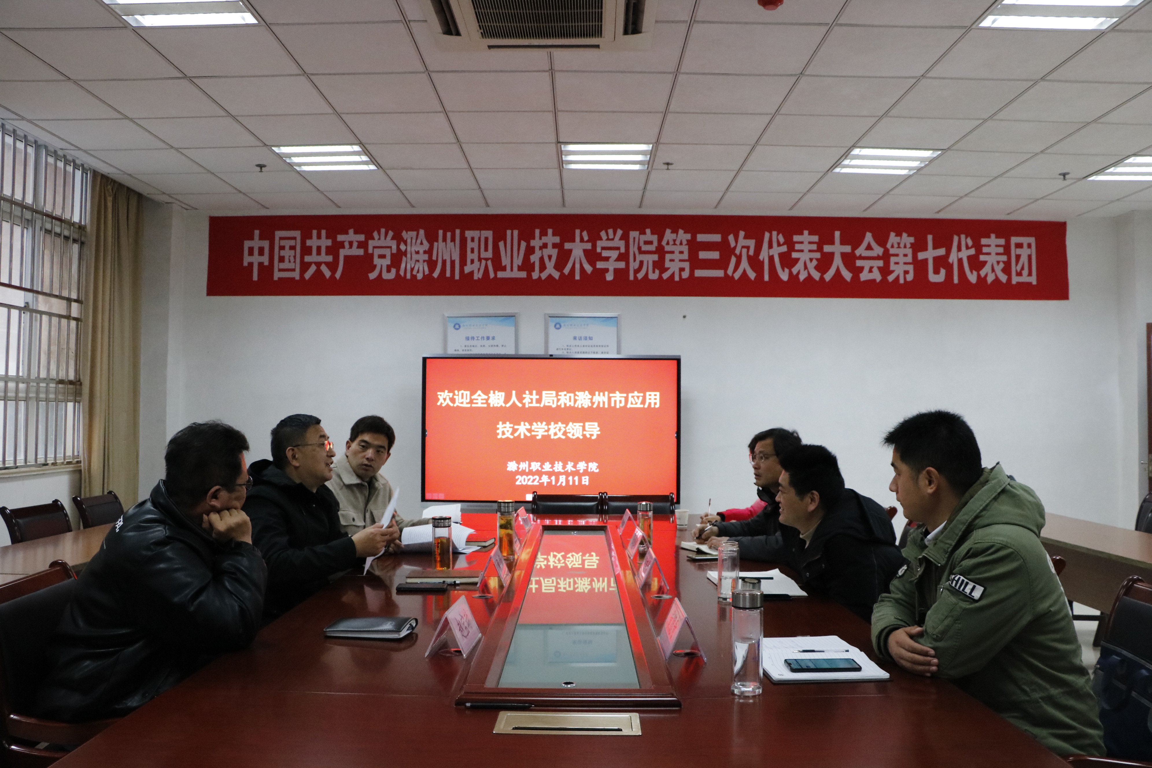 1月11日上午,滁州市应用技术学校书记、校长赵育成,全椒县人社局职建股负责人黄德奇一行来新葡的京官网考察交流。校长助理、招生就业处处长穆松热情接待,招生就业处、继续教育学院相关负责人参加了座谈。