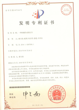 新葡的京官网师生联合申请的“一种机械传动演示台”发明专利获授权