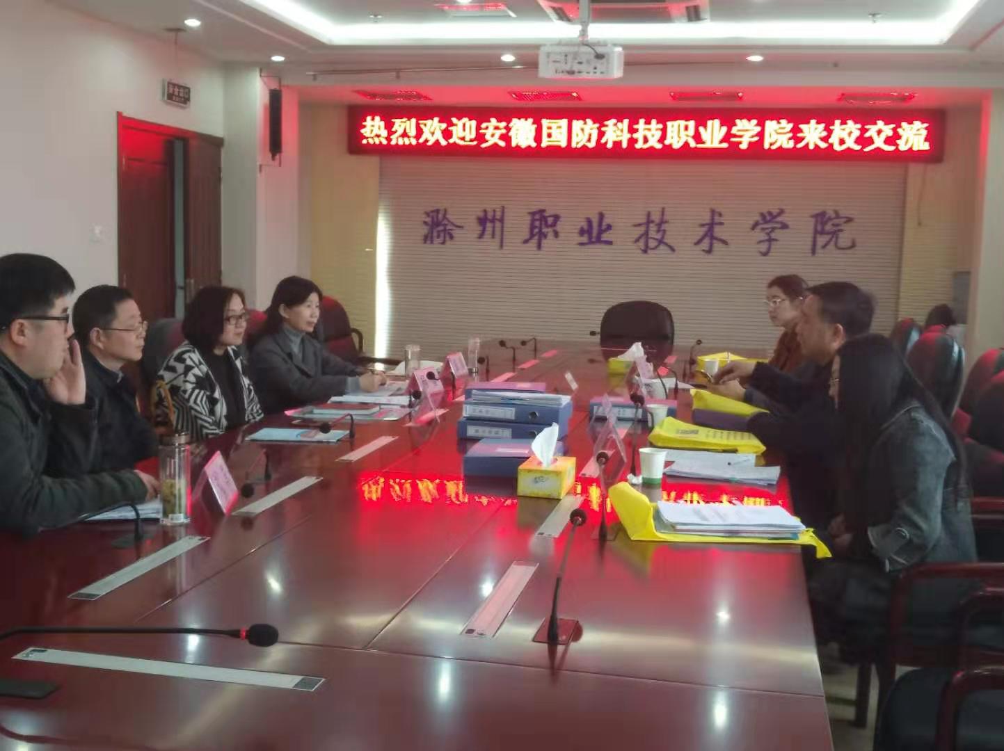 3月18日下午,安徽国防科技职业学院职教研究所所长陈小林、教务处(科研处)王志宏处长、副处长白斌丽与科研干事王云一行4人来新葡的京官网调研学习。交流座谈会在综合楼902会议室举行,新葡的京官网职研所副所长李爱红、科技成果转化中心主任刘青等4名科研处工作人员参加了会议。