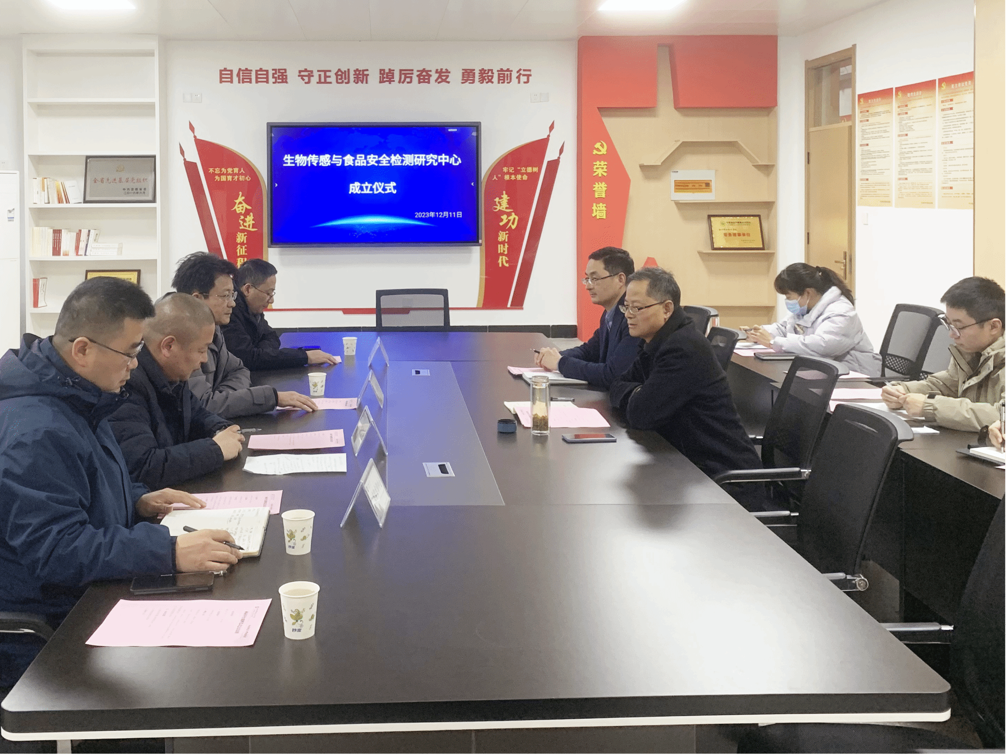 12月11日下午,食品与环境工程学院生物传感与食品安全检测研究中心成立暨揭牌仪式在2号教学楼2317会议室举行。校党委委员、副校长苏有良出席仪式、科技处、教务处、实验实训中心、食品与环境工程学院等院部负责人、生物传感与食品安全检测研究中心平台负责人及项目团队人员参加,仪式由科技处处长肖陆飞主持。