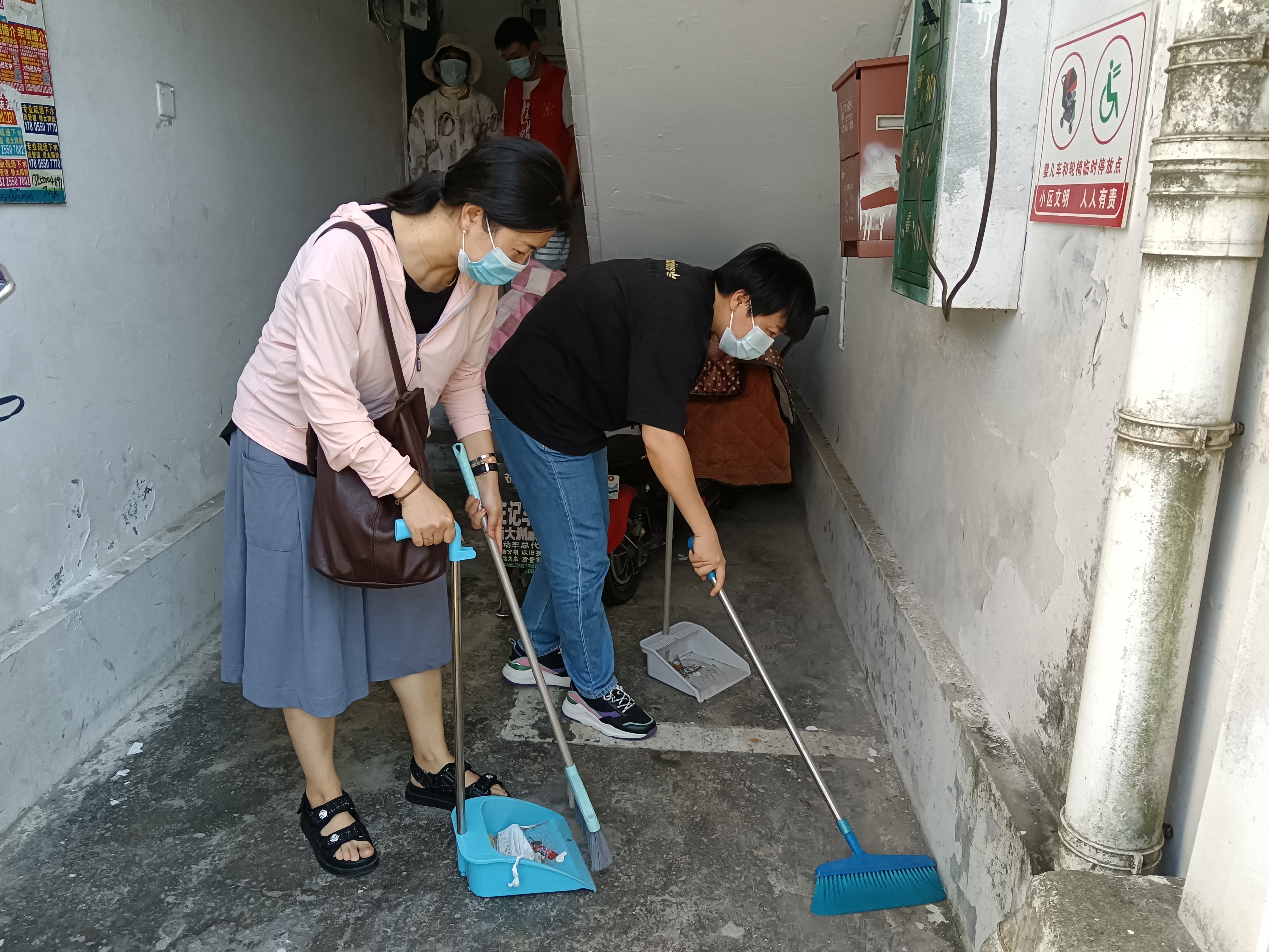 进入活动现场,在工作人员的带领下,大家手拿扫帚、簸箕、垃圾夹等工具,对社区居民楼的楼梯、走道等场所展开卫生打扫和垃圾清理。此外,志愿者们相互合作,对住宅小区内乱停乱放的电动车、自行车等进行规范停放。伴随着“汗水与灰尘齐飞”的场面,大家非但毫无一丝怨言,而却在脸上洋溢着快乐的笑容,在心里感受着奉献的光荣。经过一个多小时的劳作,使得该居民楼和住宅小区的面貌大大改观、焕然一新。