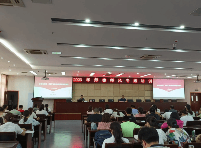 为深入贯彻落实教育部关于进步以加强和改进师德师风建设的意见,7月5日,组织人事处、基础教学部联合开展了师德师风专题培训,邀请了合肥工业大学马克思主义学院王前军教授讲授《价值与实践 新时代高校教师师德师风建设》师德师风专题讲座。校党委委员、组织人事处处长李超主持讲座。基础教学部全体教师、2020年~2023年入职的新教师、各教学院部骨干教师代表等150余名教师参加。